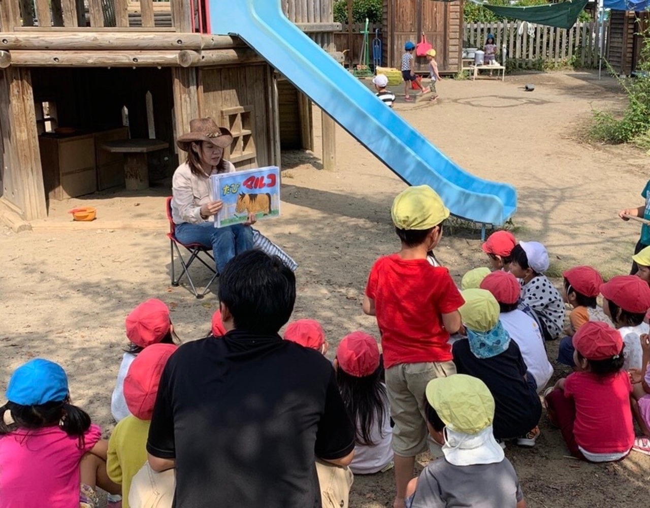 保育園に行き、小さなポニー のマルコくんのふれあいをして、読み聞かせをしています。